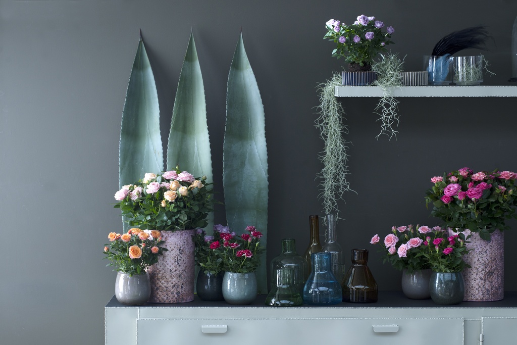 Roses have been cultivated for at least 500 years, but the potted rose is a relatively new in addition to the range. What is unique about this flowering plant is that the buds, flowers and leaves are in proportion with one another. It truly is a mini copy of a big rose bush. We would like to give you some more background information about this romantic plant and how you can best display it in your store.