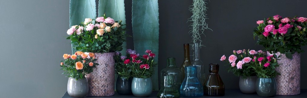The potted rose represents love, passion, unity and friendship. People associate roses most immediately with cut flowers, but potted roses offer the same romantic mood and emotion. Roses originate from the northern hemisphere, particularly China and Europe. The name ‘rose’ is derived from the Celtic word ‘rhodd’, which means ‘red’. Many roses originally had red flowers. However, breeders have managed to produce all sorts of other colours. Ultimately this is also resulted in the potted rose - a perfect miniature with the proportions of the large bush - with colours such as pink, orange, yellow and white.